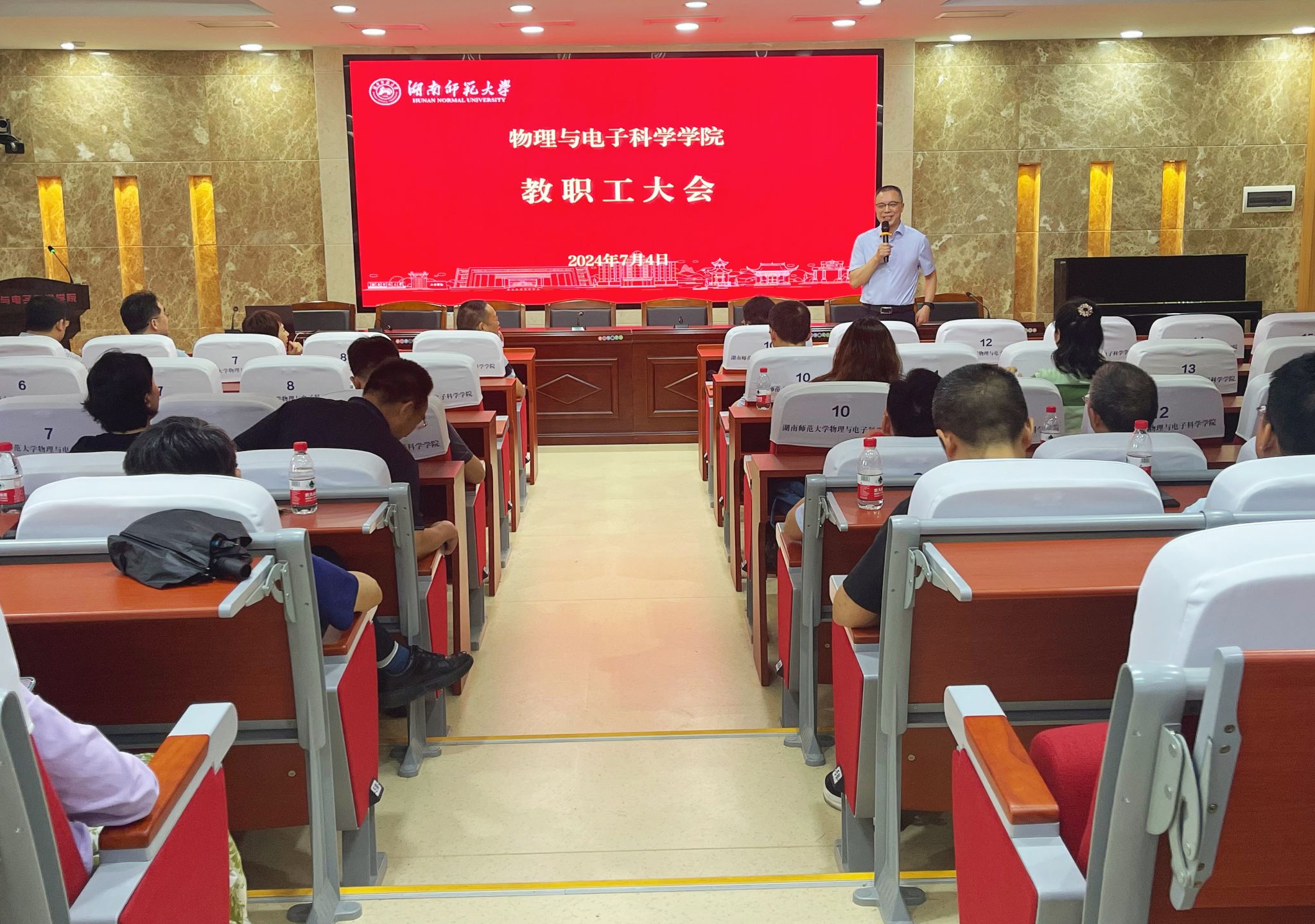 为总结学期工作成果,凝聚全体教职工共识,推动学院各项工作行稳致远,7月4日下午,学院在格物楼509报告厅召开全体教职工大会。学院领导班子成员和全体教职工出席,副院长李友明主持会议。